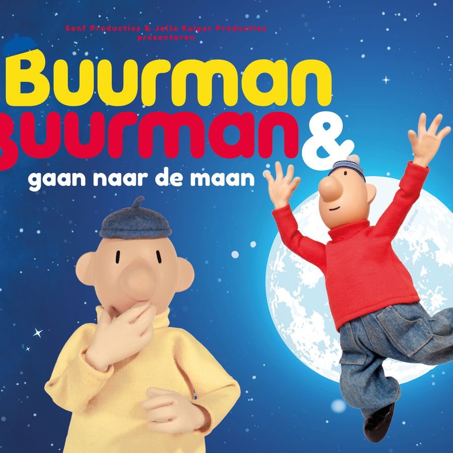 Als Buurman & Buurman na een dag hard werken ‘s avonds nog even in de tuin zitten, zien ze dat het volle maan is. Wat zou het toch bijzonder zijn om hun huisje eens vanaf te maan te kunnen bekijken, fantaseren ze. ‘Zullen we niet gewoon een raket bouwen en het proberen?’ zegt Buur. Die nacht kunnen ze bijna niet slapen van het idee om naar de maan te gaan. De volgende dag beginnen ze direct. Er moet heel wat gebouwd worden: een raket, een lanceerbasis en natuurlijk ruimtepakken. Als dat maar goed gaat… Hun lijfspreuk ‘A JE TO!’ (betekent: ‘en dat is het’) roept straks de hele zaal luidkeels mee.