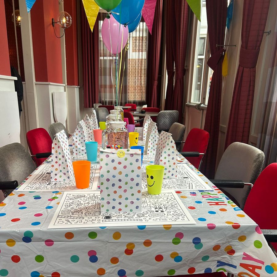 Vier je verjaardag in het theater met een onvergetelijk feestje! Je wordt ontvangen aan een speciaal versierde VIP-tafel vol ballonnen en slingers. Daar staat een vrolijke kidsbox voor je klaar, boordevol lekkernijen en leuke verrassingen. Met al je vriendjes en vriendinnetjes ga je naar de voorstelling (jouw kaartje krijg je van ons cadeau! 😉). Tijdens het feest staan er kannen ranja op tafel en na de voorstelling kun je nog even nagenieten met een snack uit je box terwijl je lekker kleurt. En wie weet... misschien spot je nog een acteur voor een foto!*